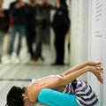 Documento/a - Expuesto en el culo de un desgraciado. Las imágenes de un loco, un masoquista y un artista conceptual, me sirven de justificación para hablar de inspiración y apropiación, de la estética o patrón de una desgracia que, reflejada fuera de contexto, ofrece un bonito cuadro, placer fetiche o acción. Lo último que digo en la pieza, y que no es el final de lo que hago, "Aunque yo sea pobre mi pensamiento es burgués, bueno, casi burgués, y esto es así porque un coreógrafo no puede ser proletario”.