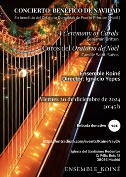 En este concierto de Navidad Ensemble Koiné interpretará A Ceremony of Carols de Benjamin Britten y el coros seleccionados del Oratorio de Noël de Camille Saint-Saëns.