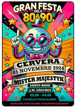 Vine a gaudir d'una nit inoblidable dedicada als ritmes més icònics dels 80 i 90! Cervera acollirà una selecció espectacular de DJs que et faran ballar sense parar amb tots els hits d'aquelles dècades màgiques. Gaudeix d'una decoració temàtica espectacular, animadors que mantindran el millor ambient i molts regals i sorpreses pels assistents. No et perdis aquesta oportunitat de viure una nit plena de música, diversió i records!