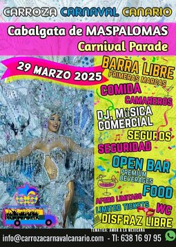 More info and conditions at www.carrozacarnavalcanario.com or by WhatsApp: 638 16 97 95